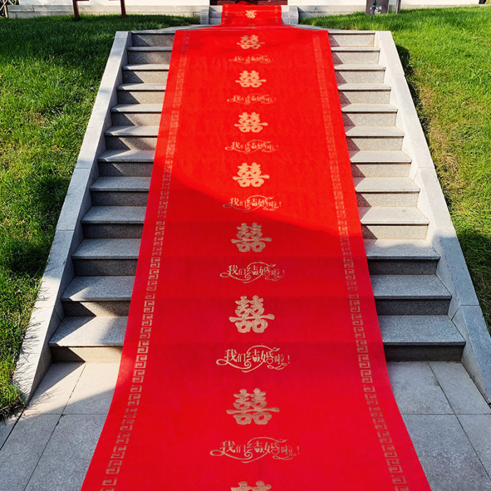 紅地毯一次性結婚用婚禮婚慶布置喜字紅色大加厚樓梯客廳室外室內