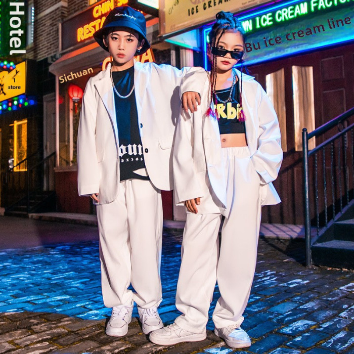 兒童爵士舞服裝帥氣西服街舞演出服套裝女孩嘻哈hiphop走秀舞台潮