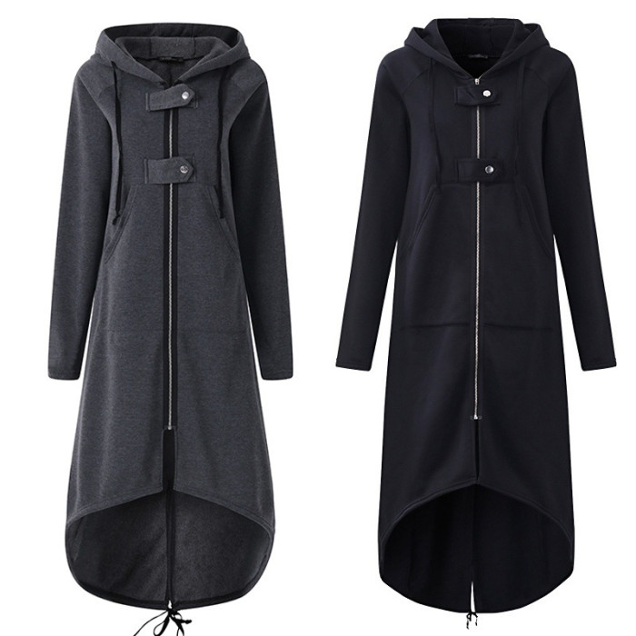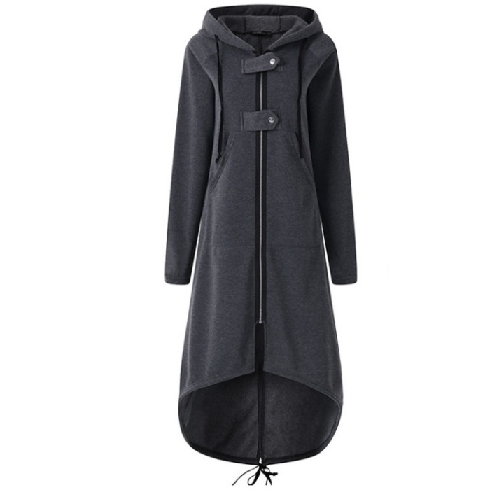 新款wish抓絨衛衣連帽外套拉鍊長款風衣