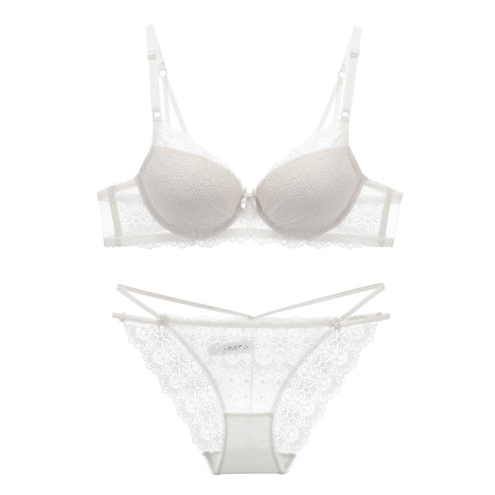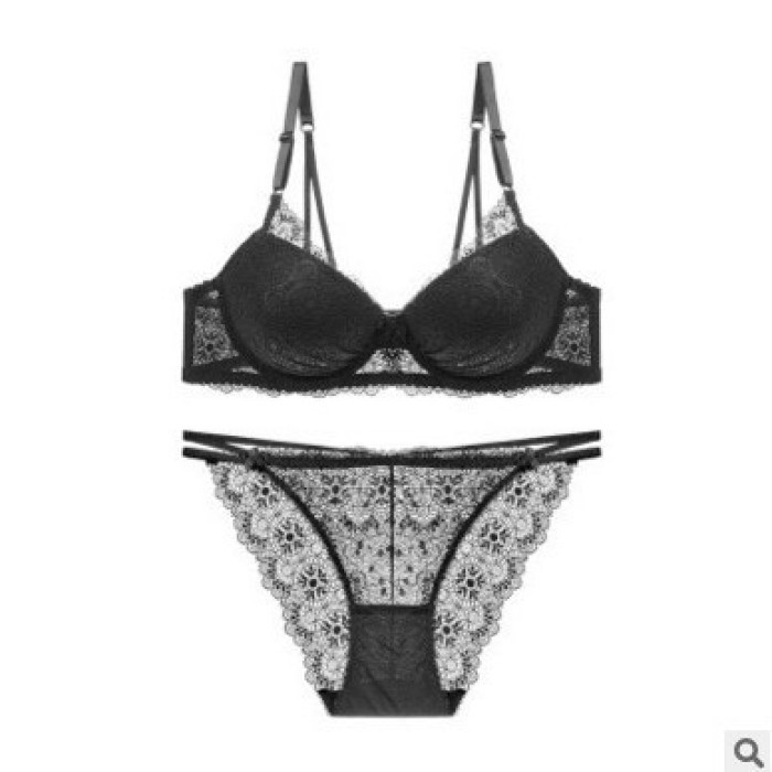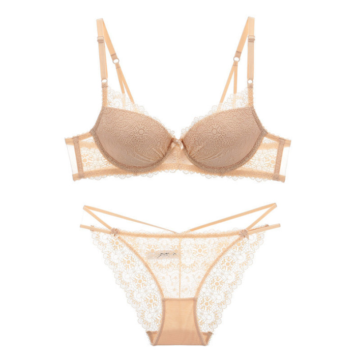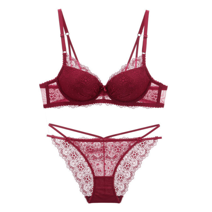 新款女深V胸罩性感蕾絲聚攏文胸上薄下厚內衣套裝