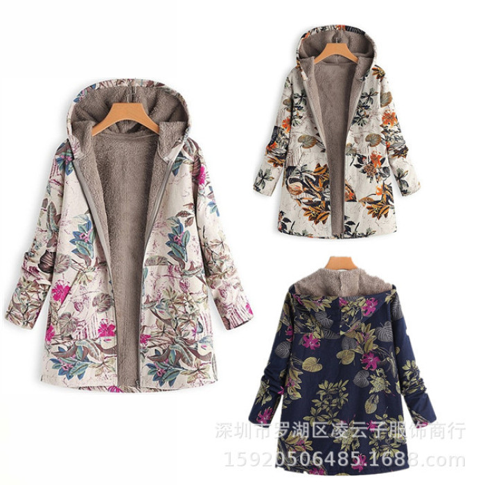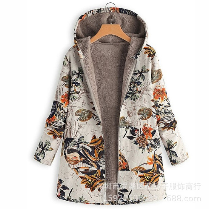 實拍爆款歐美新款女裝su樹葉印花連帽長袖復古外套