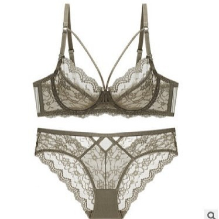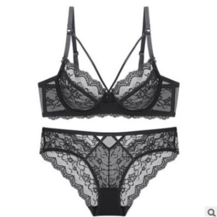 新款性感蕾絲薄款無海綿透明胸罩文胸女士內衣大胸顯小文胸套裝
