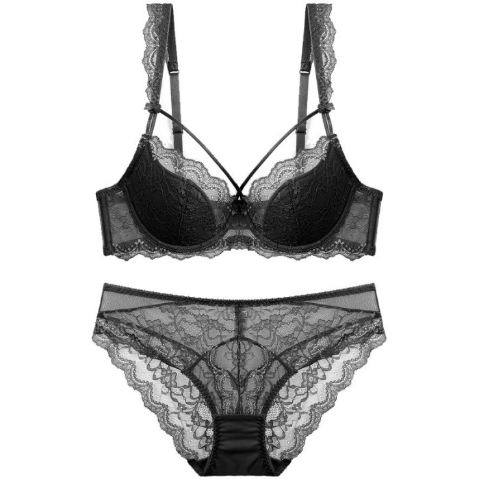 歐美性感蕾絲內衣女薄棉大胸顯小舒適透氣聚攏大碼文胸套裝