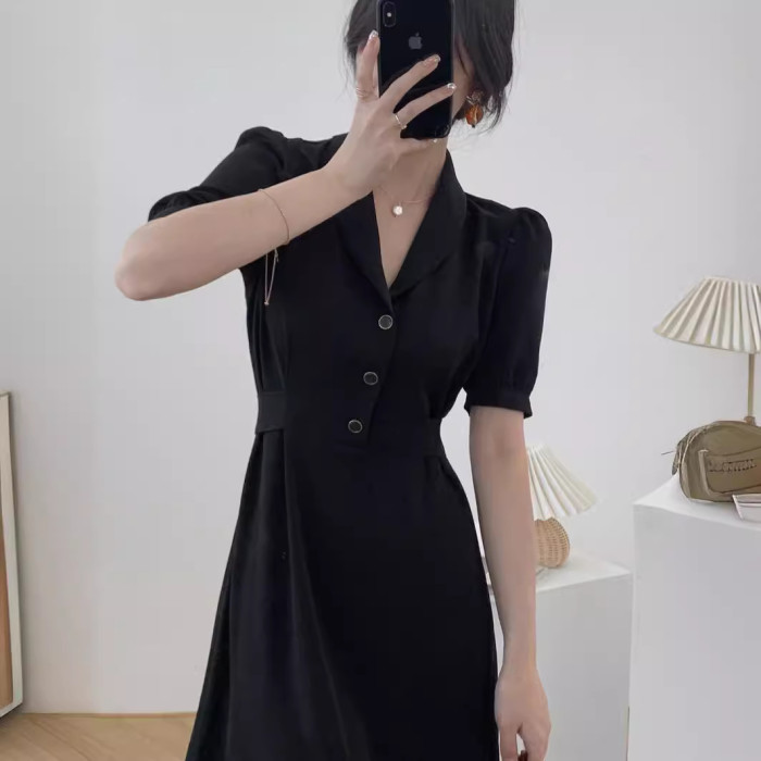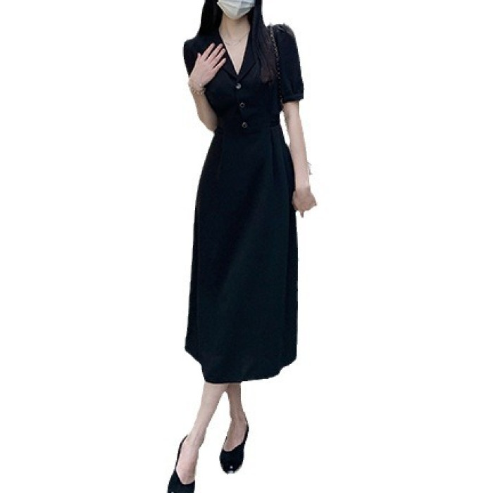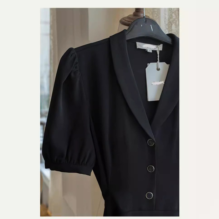 【】大碼西裝領連衣裙胖mm法式桔梗裙顯瘦遮肚子夏女22308