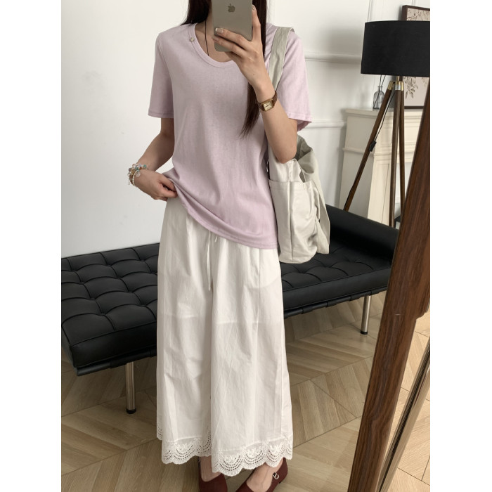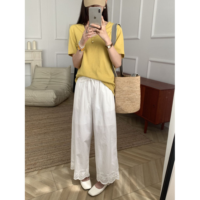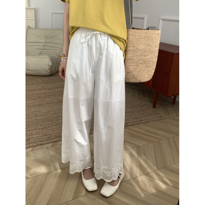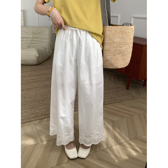 巨好看超仙森系溫柔氣質濶腿褲蕾絲拼接薄款休閒褲洋氣寬松直筒褲