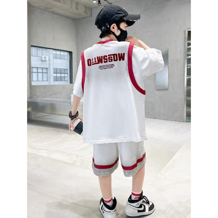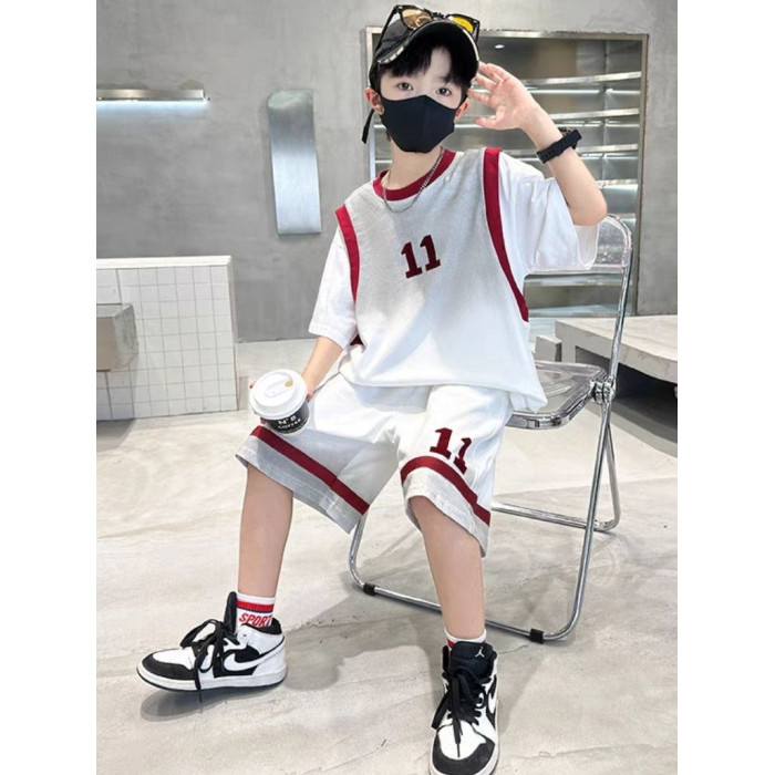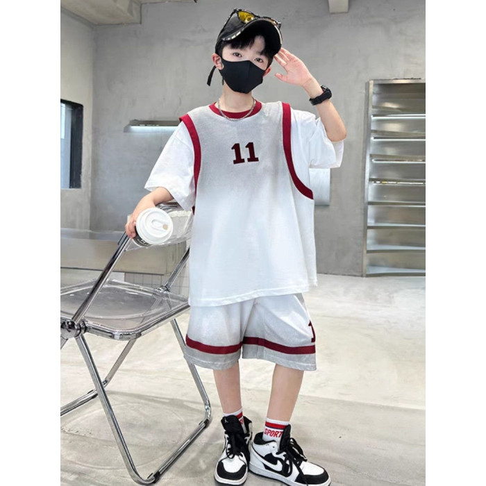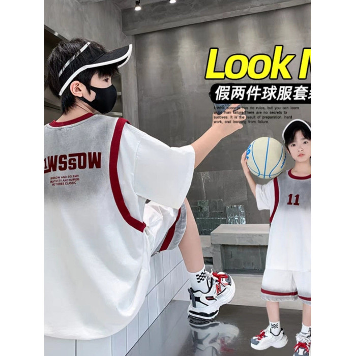安哼安哼男童潮款運動籃球服夏季薄款2025新款中大童漸變假兩件短