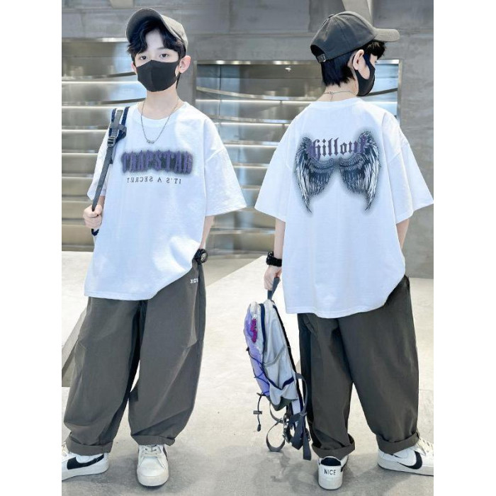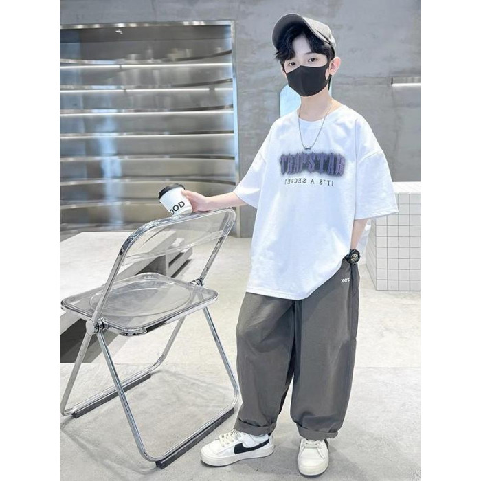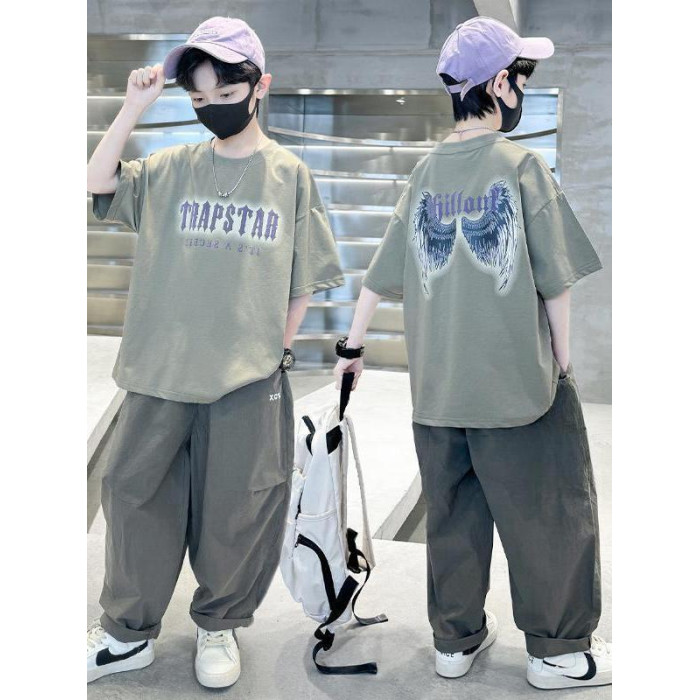 男童夏季2025新款短袖套裝男孩中大童休閒運動防蚊褲兩件套超酷帥
