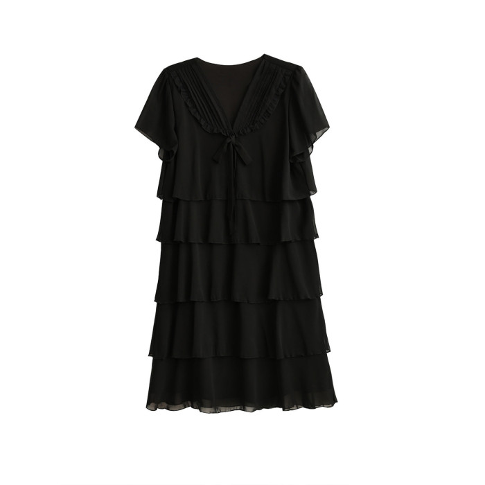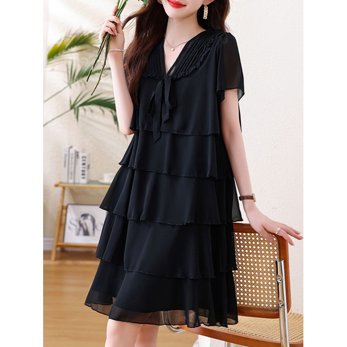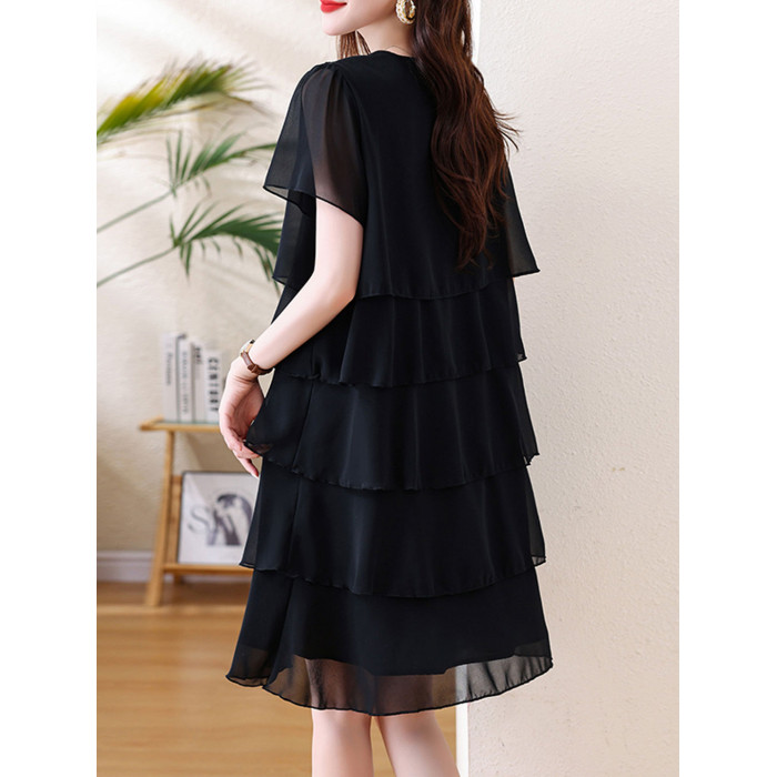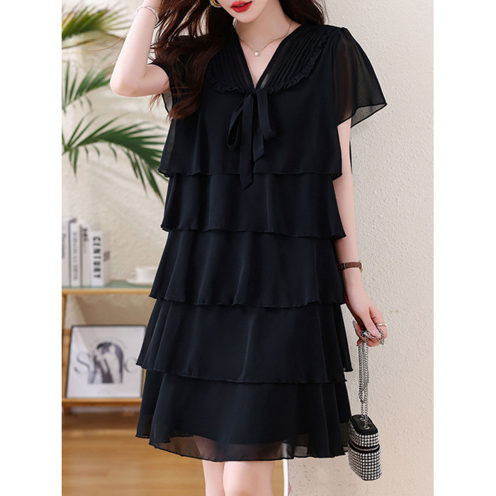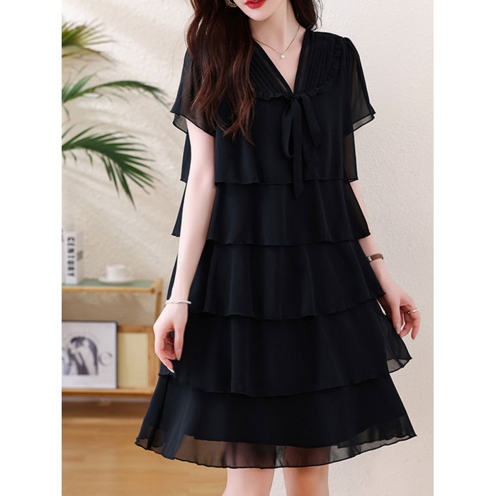 加肥加大碼女裝短袖雪紡打底衫夏季胖mm中長款顯瘦遮肚蛋糕連衣裙