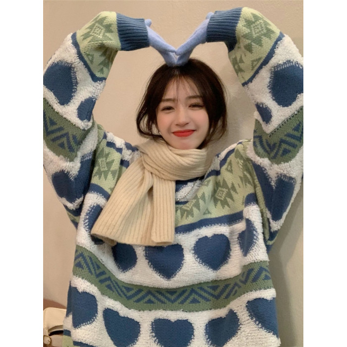 藍色愛心桃圖案/初秋早秋穿搭 165cm內穿