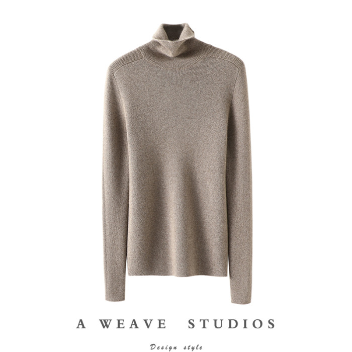 通勤老錢風~高領羊絨衫女套頭修身純羊絨毛衣針織打底衫秋冬新款