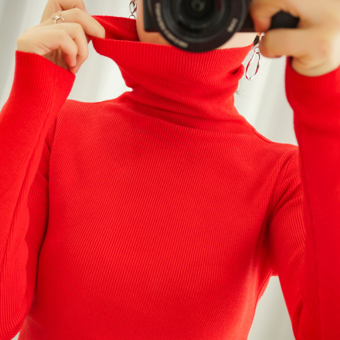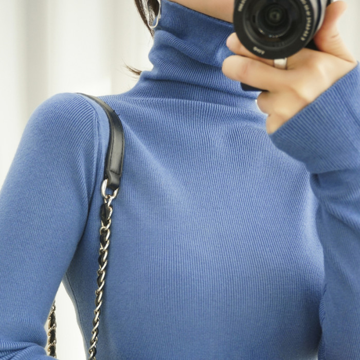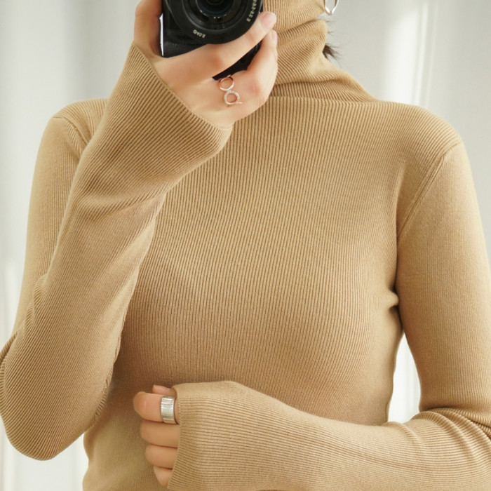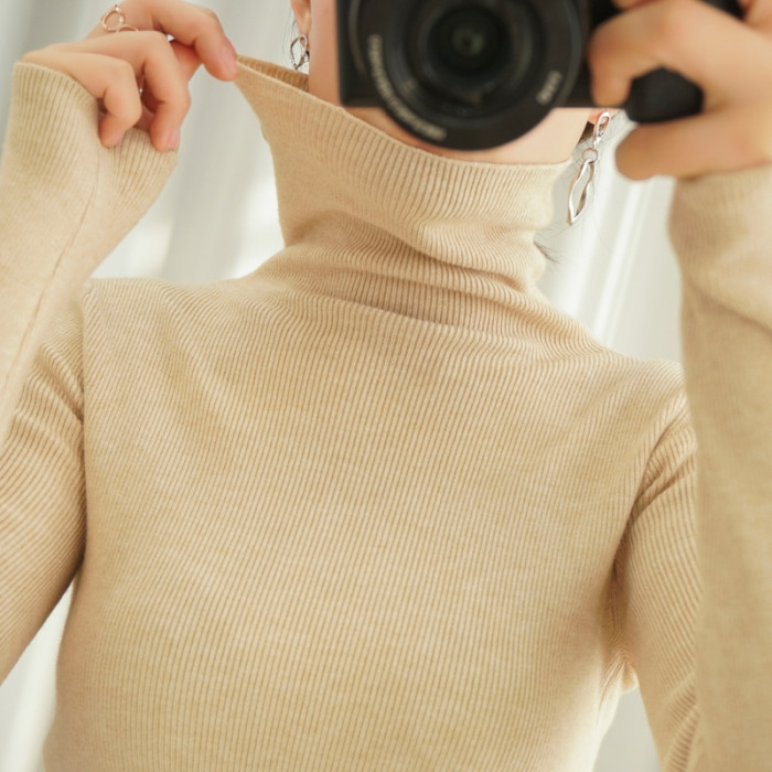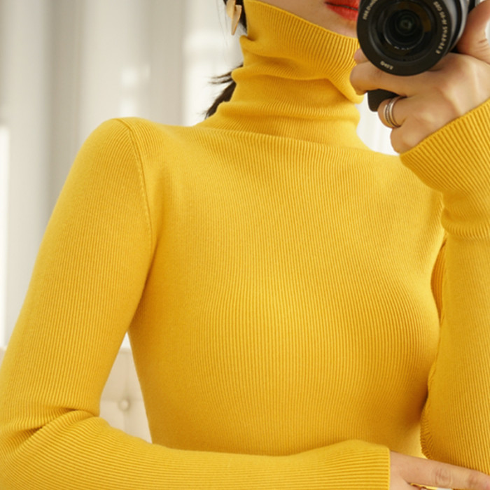 2025高領打底衫女秋冬內搭洋氣堆堆領修身時尚衣新款檸檬黃短款薑
