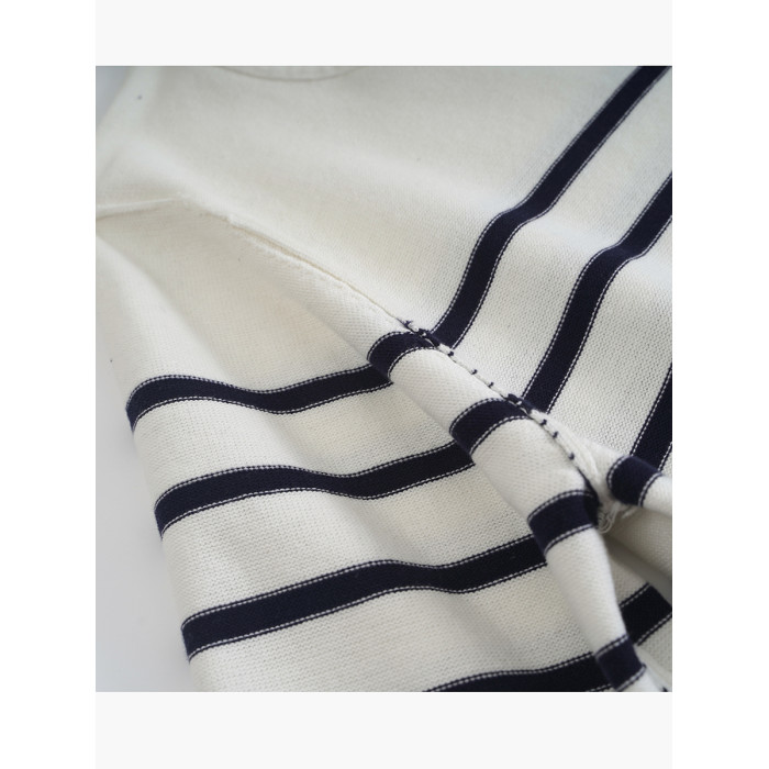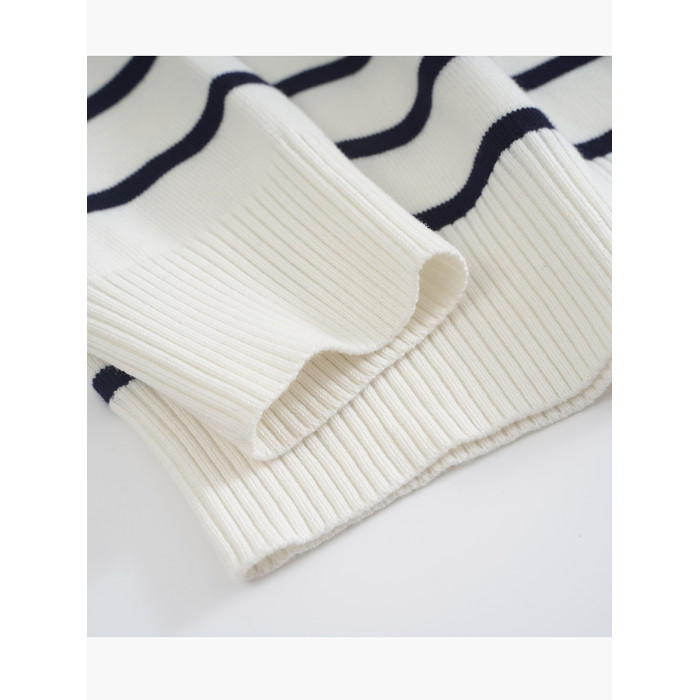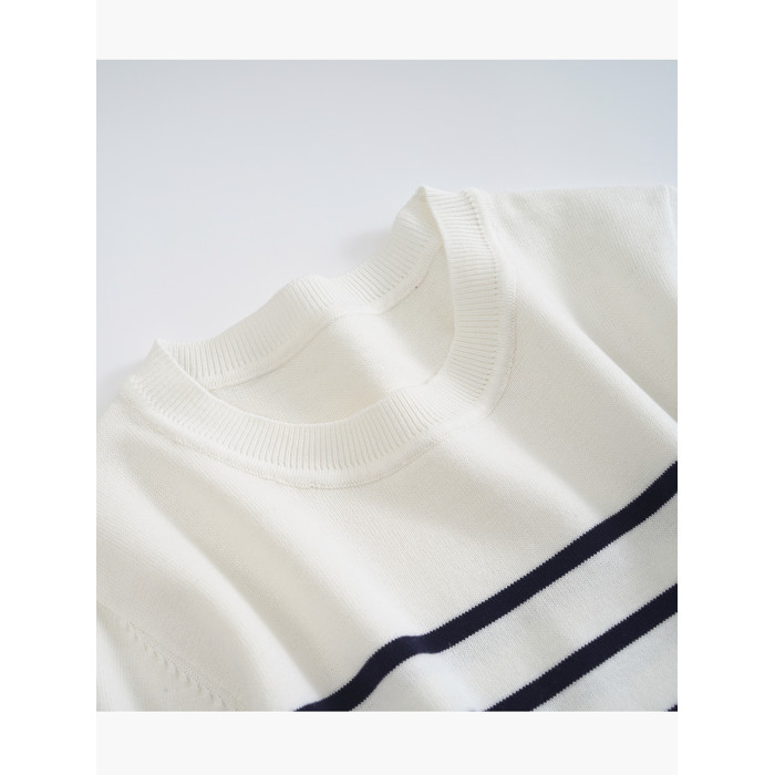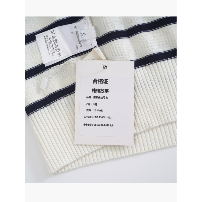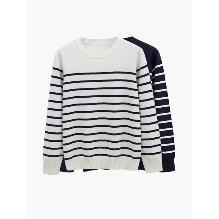 48S精紡棉 14針 全棉條紋毛衣女薄春秋圓領套頭針織打底衫 不起球