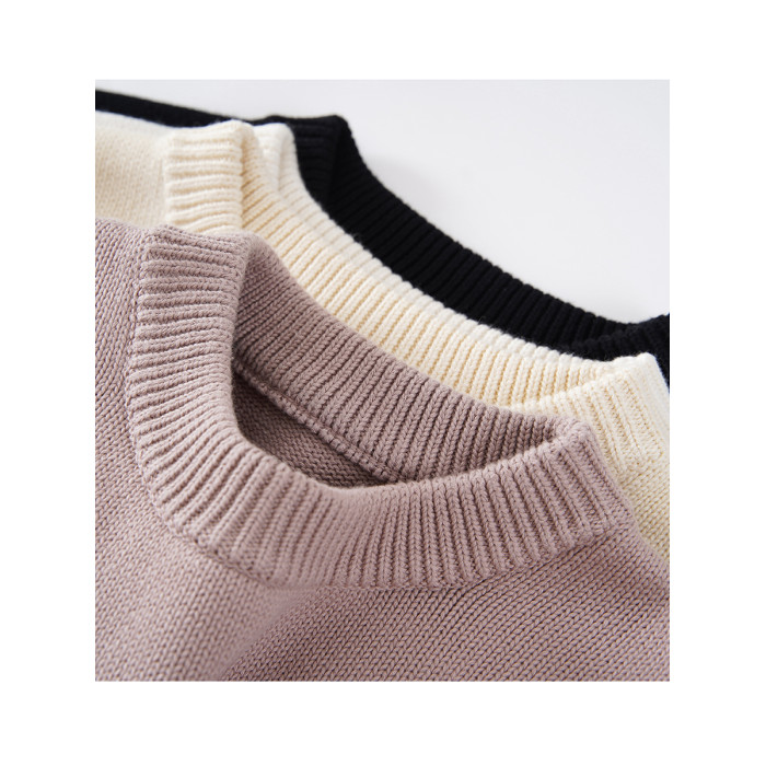 歐單好貨 粗線100%棉 圓領毛衣女士套頭針織衫打底衫 厚款 寬松型