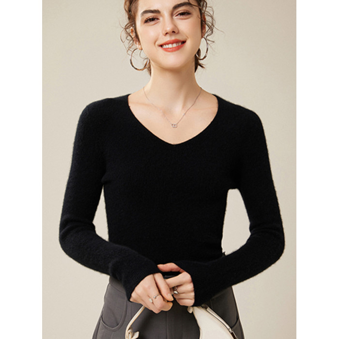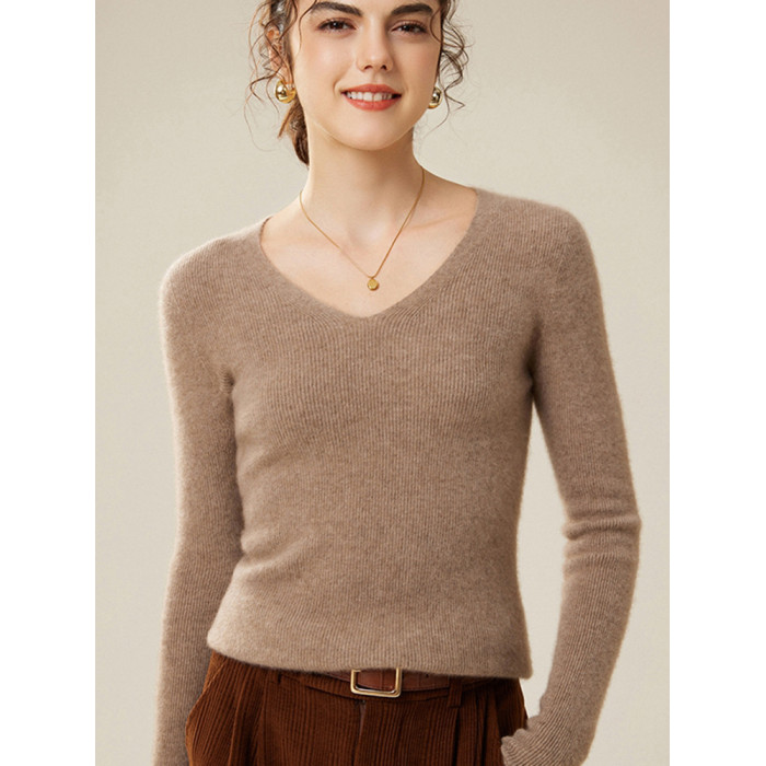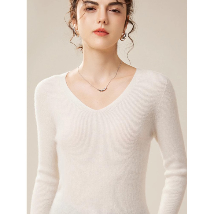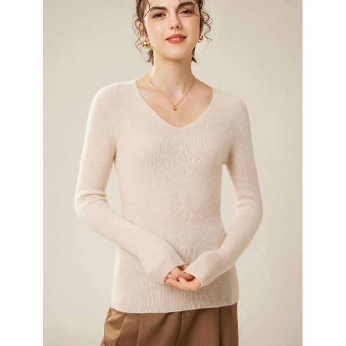 無縫一體100純山羊絨衫女v領毛衣修身顯瘦秋冬2024新款針織打底衫