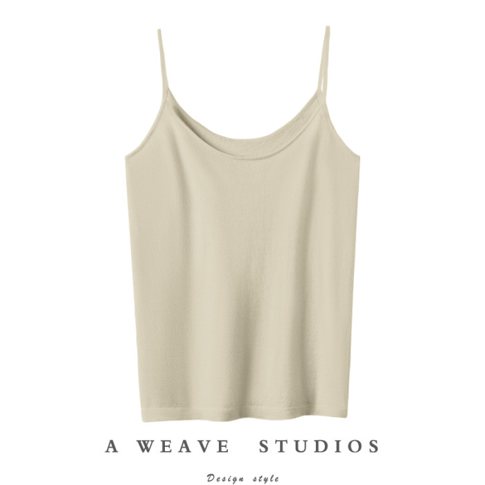 提升氣質~大牌及精紡100%純山羊絨針織吊帶背心純色百搭打底衫