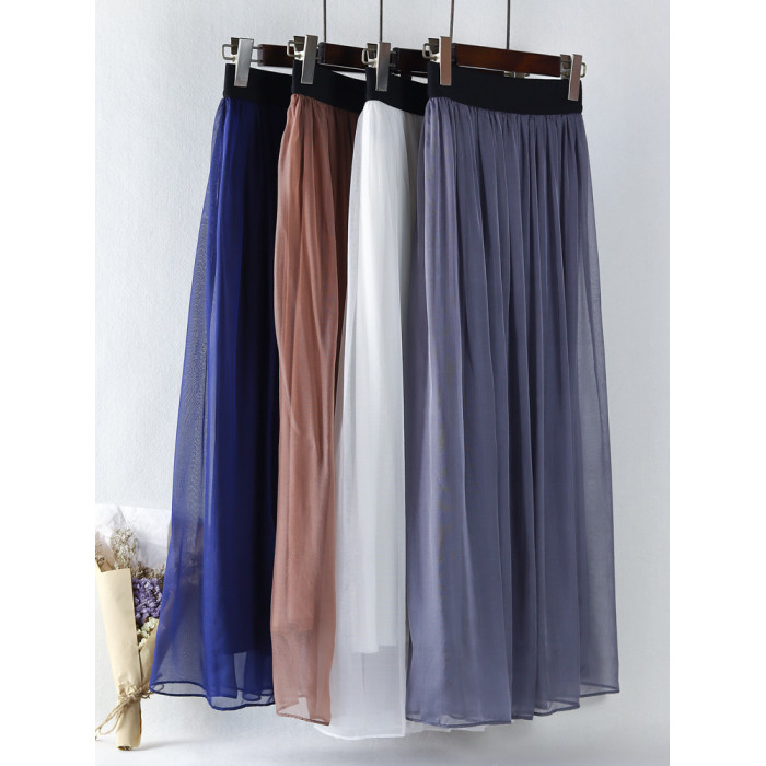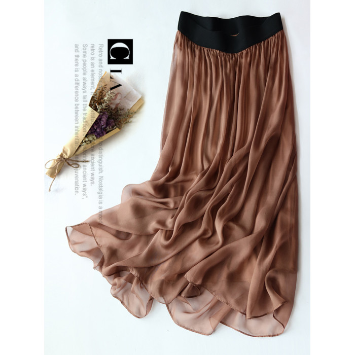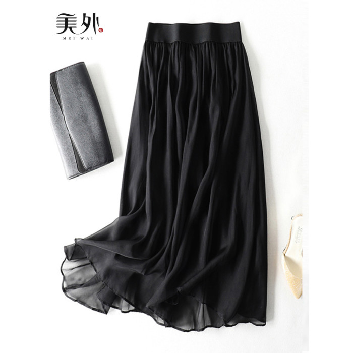 時尚高級桑蠶絲真絲半身裙女夏黑色顯瘦百搭新款A字飄逸中長裙子