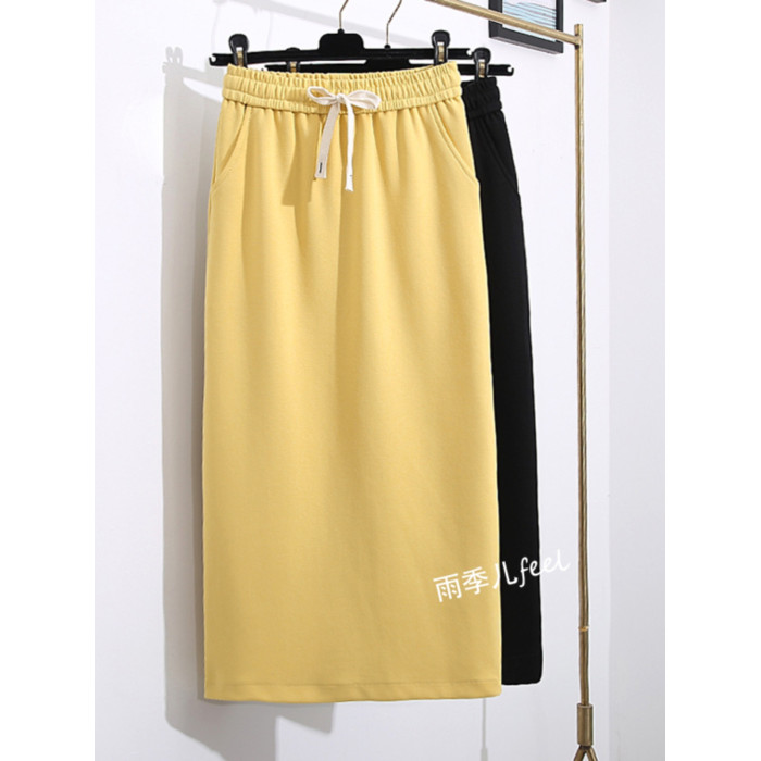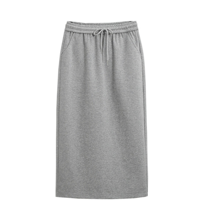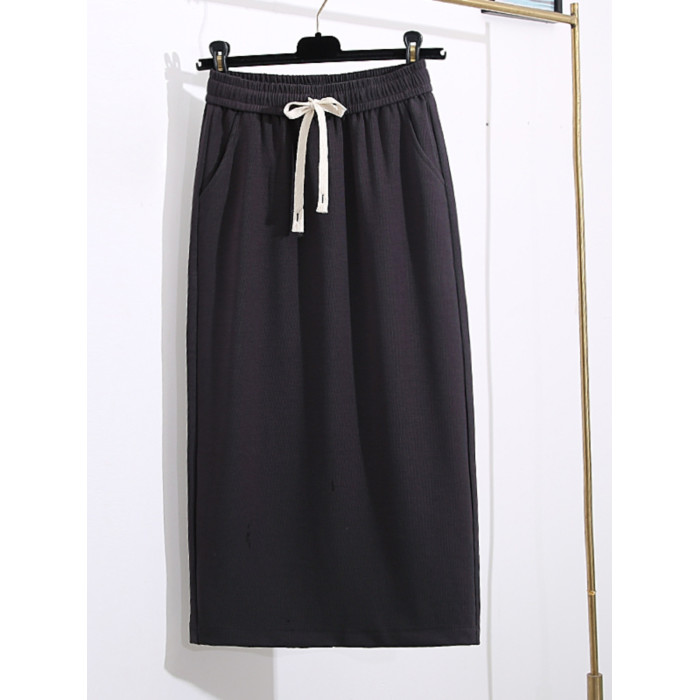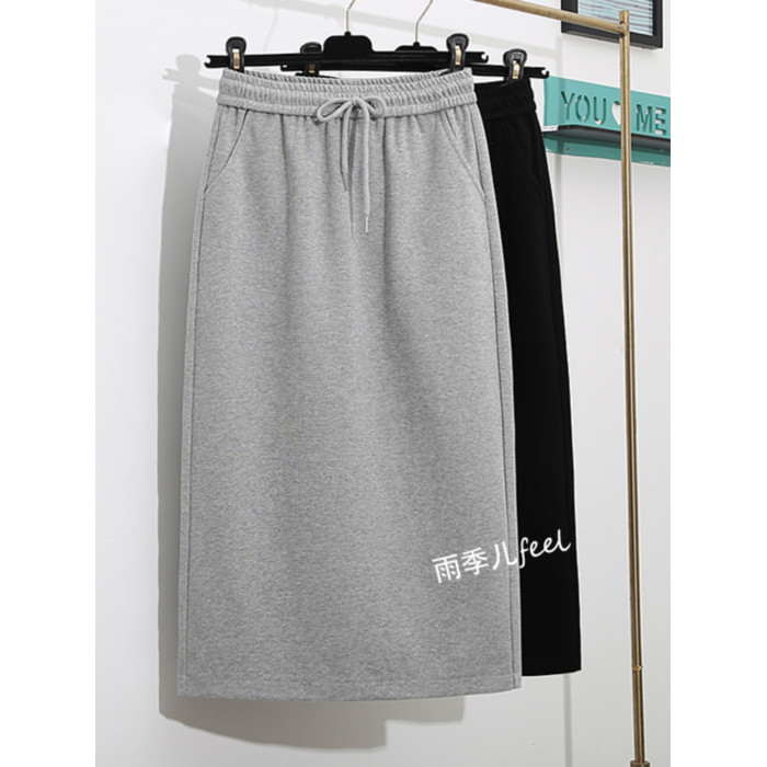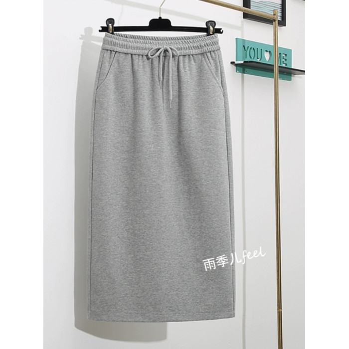 直筒半身裙女中長款夏季新款灰色高腰開叉遮胯顯瘦一步長裙休閒裙