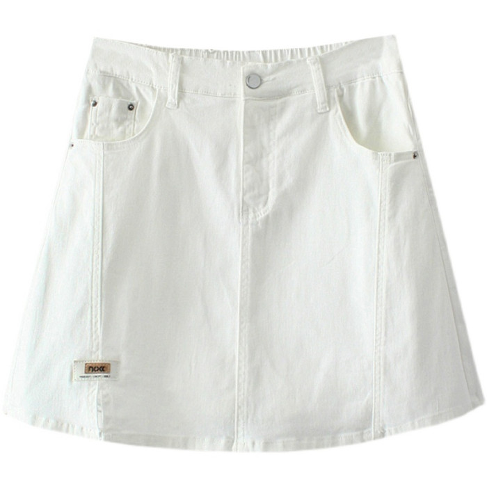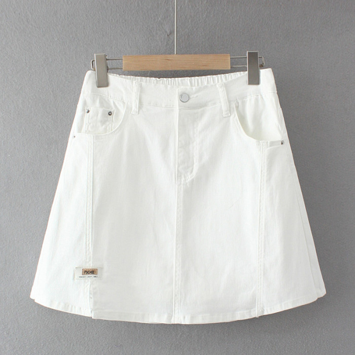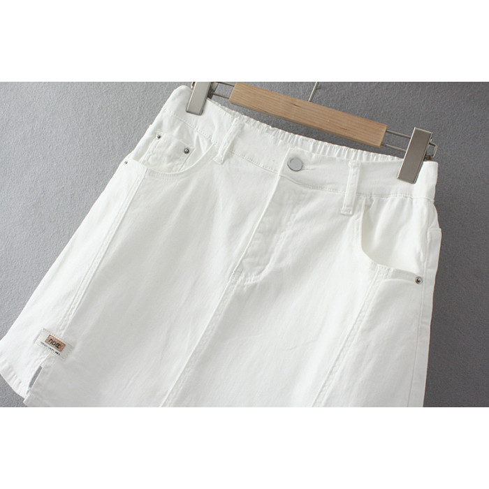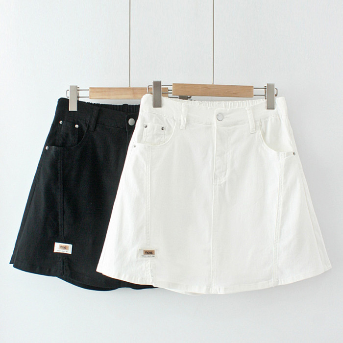 200斤胖MM夏季韓版新款大碼女短裙下擺字母彈力水洗牛仔裙褲