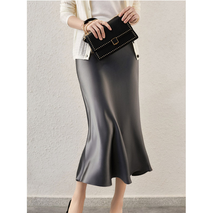 醋酸半身裙女長裙高級三醋酸面料緞麵包臀魚尾a字裙真絲半裙垂墜