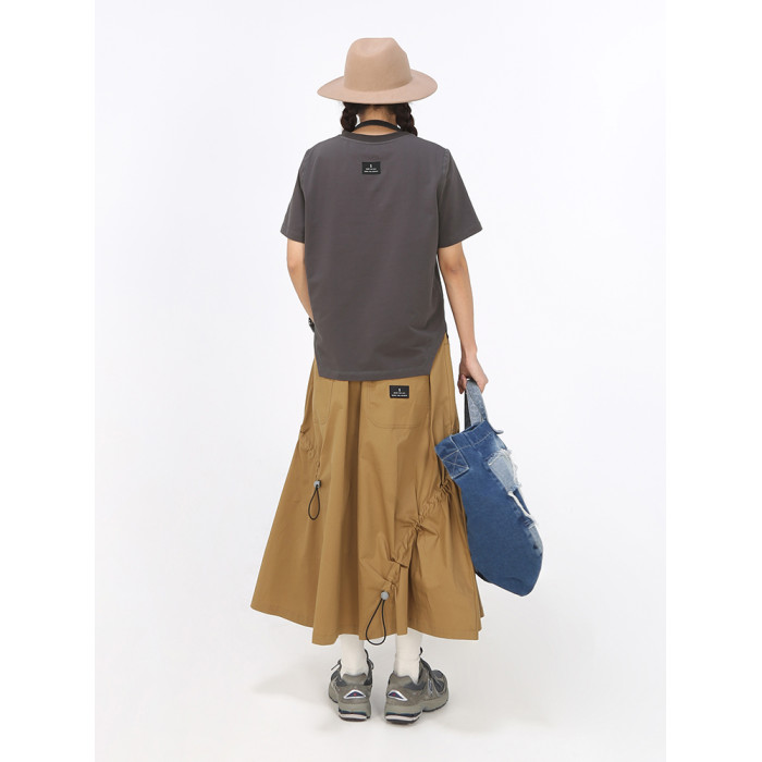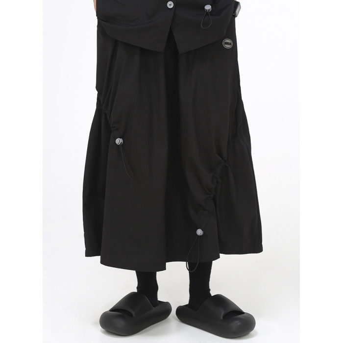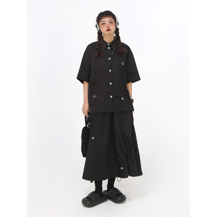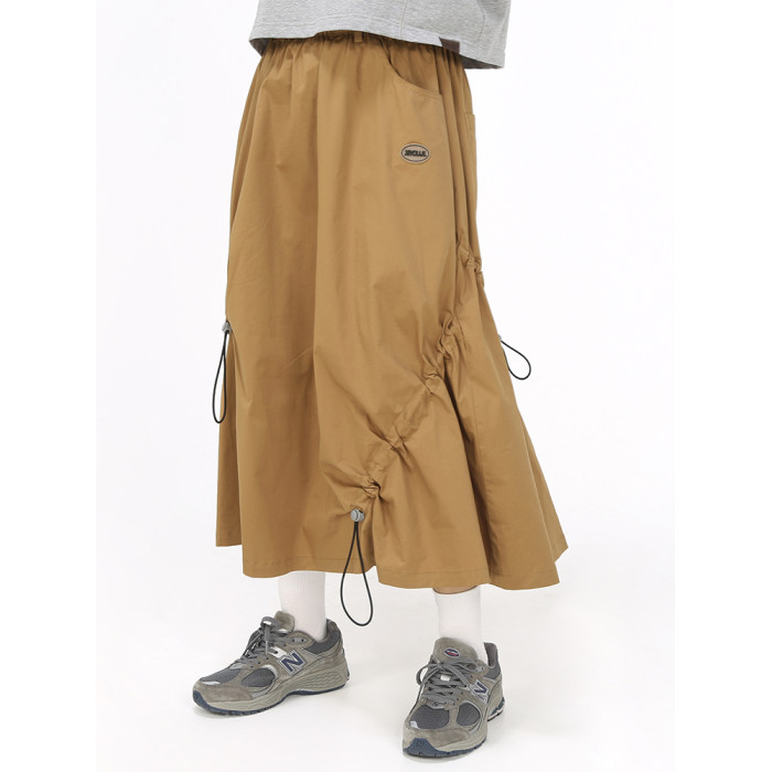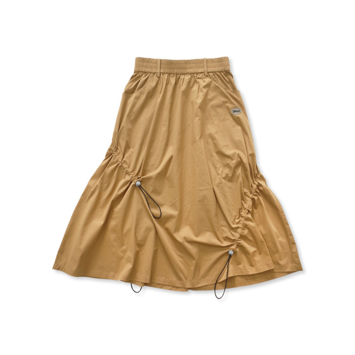 嬉遊記原創 2025夏新款設計感錯位抽繩半身裙女遮胯a字小個子繖裙