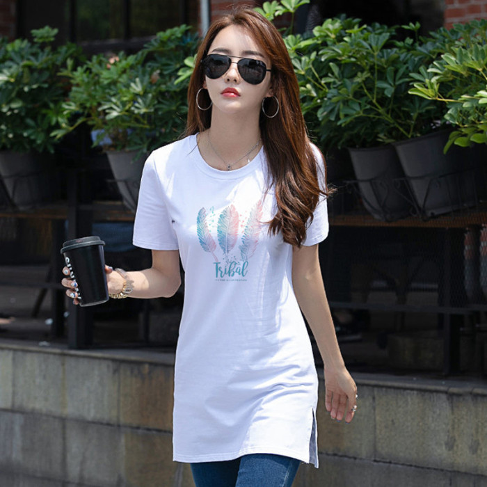 中長款短袖t恤女夏季新款韓版修身白色包臀體恤棉質半袖上衣女潮T