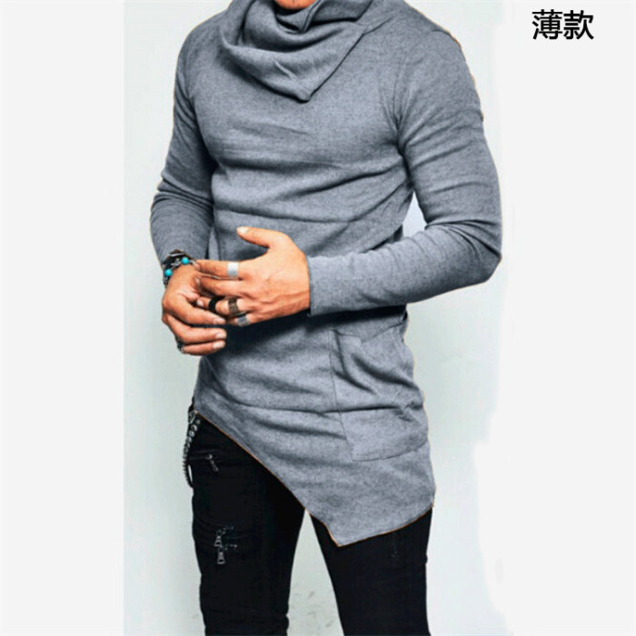 春秋季新款歐美堆堆領長袖薄款男士上衣男裝