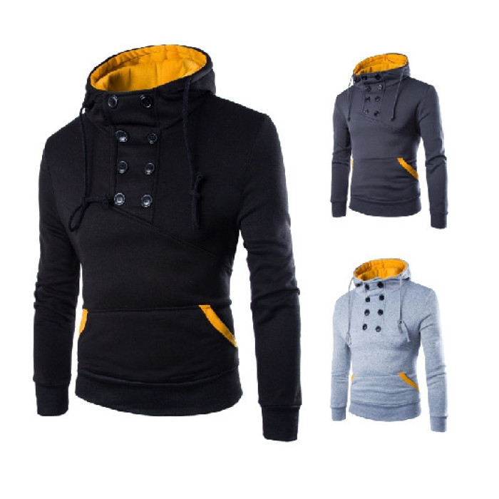 新款雙排釦套頭外套男士短款修身拉絨連帽衛衣