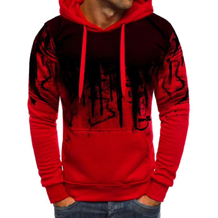 秋冬新款男士潑墨印花休閒衛衣長袖連帽衫連帽運動衫外套