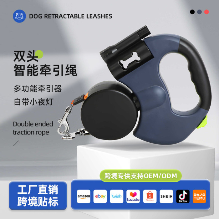 自動伸縮多功能寵物牽引繩牽引器中小型犬一拖二遛狗神器寵物套裝