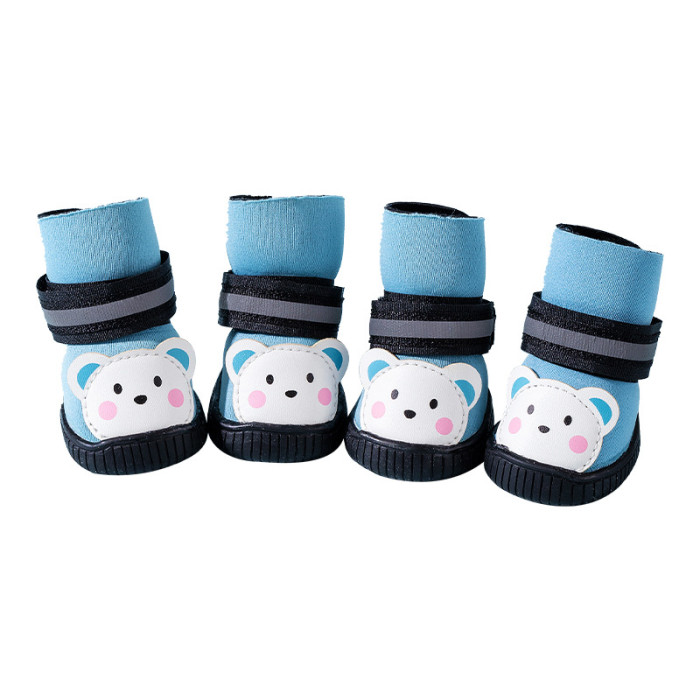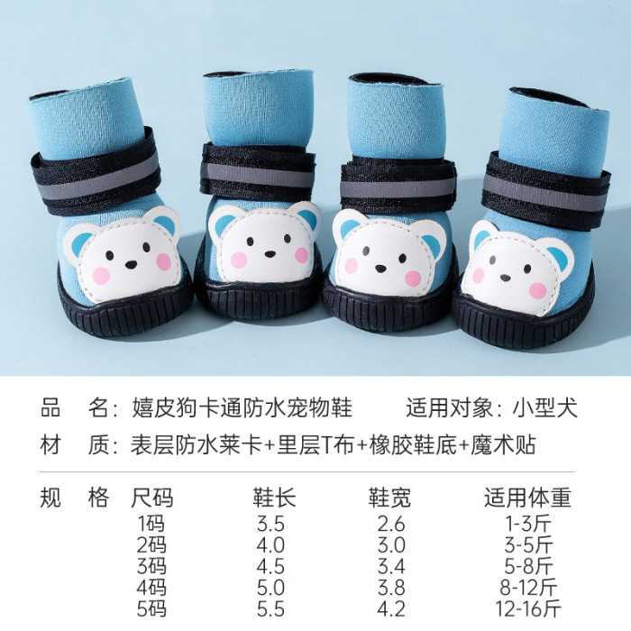 新款狗狗外出防滑耐磨卡通防水寵物鞋子雨天反光泰迪不掉腳狗雨鞋