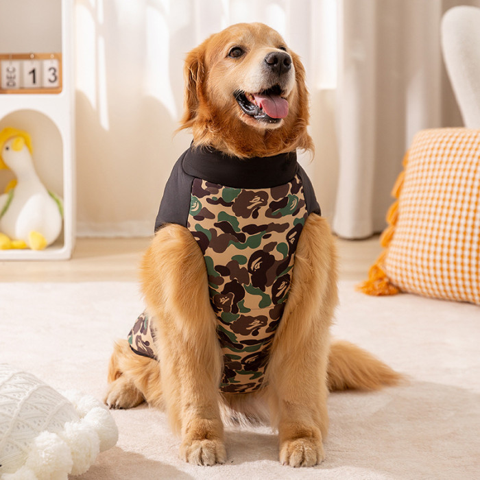 狗狗秋冬季加厚外出迷彩棉衣中大型犬金毛大狗馬甲寵物狗衣服