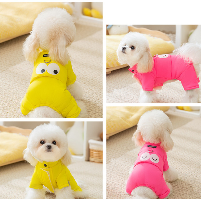秋冬季狗狗加厚保暖中小型犬可愛大眼怪素色四腳棉衣貓咪寵物衣服