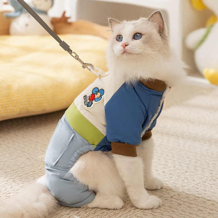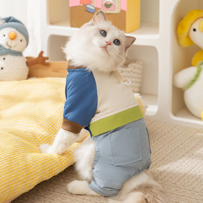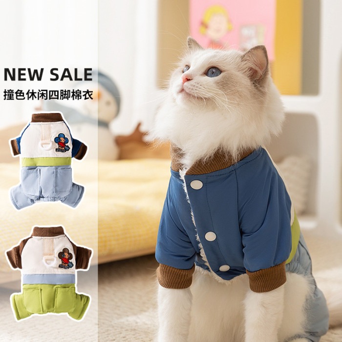 秋冬季貓咪無毛貓保暖加厚撞色休閒四腳運動棉衣泰迪狗狗寵物衣服