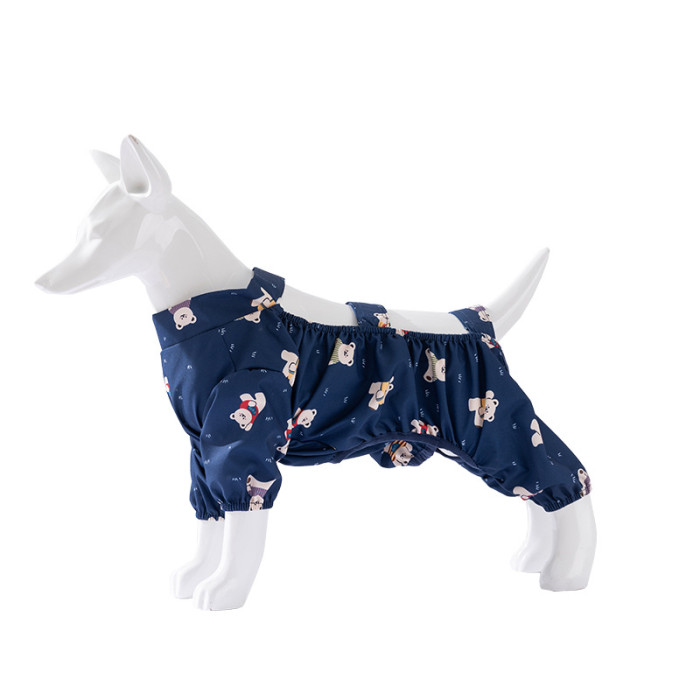 春夏狗狗滿印小熊柯基防水防塵褲中小型犬外出防髒罩衣寵物狗衣服