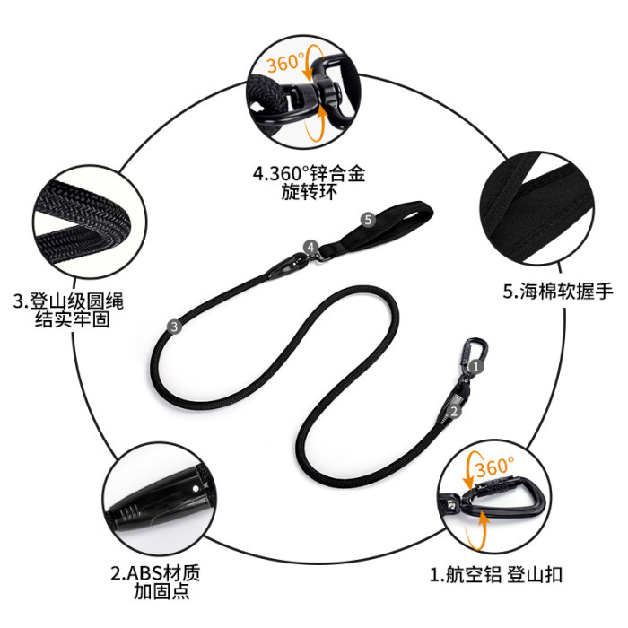 高密度加粗尼龍遛狗繩防爆沖鋁合金釦高彈力狗狗牽引繩