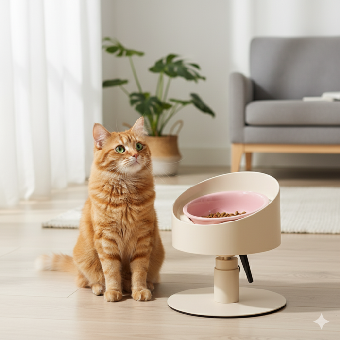 1613433 麻薯向日葵貓碗陶瓷護頸寵物可調節貓咪喝水喂糧狗狗碗食盆大口徑