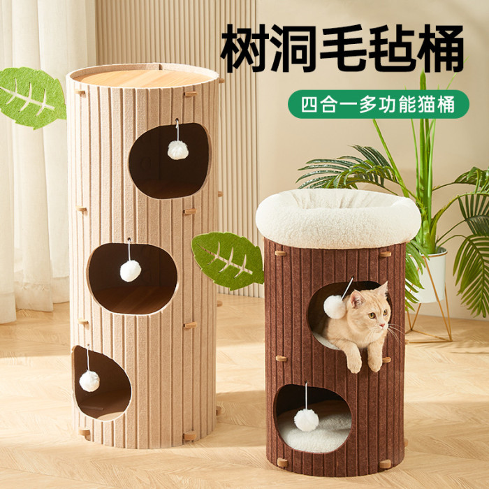 貓爬架貓窩一體冬季保暖多層封閉式貓抓板窩樹洞毛氈桶耐抓不掉屑