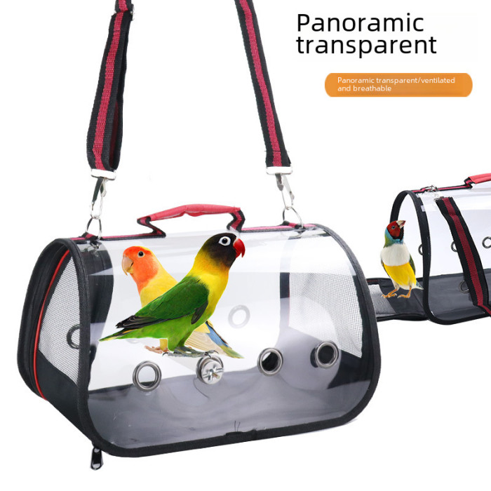 小寵用品新款大號鳥籠帶木站棒鸚鵡外出包透明小寵物外出包