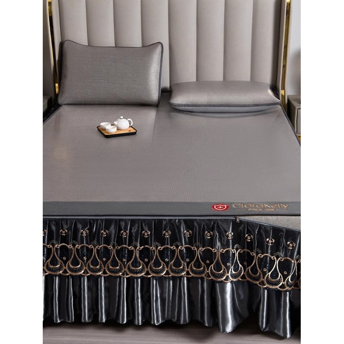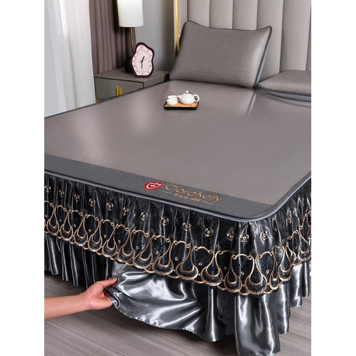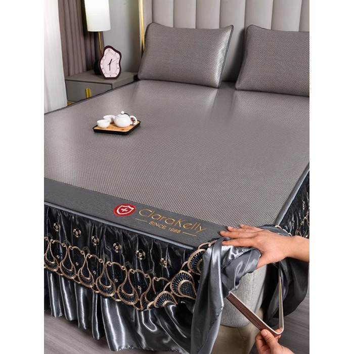 2025新款夏季天然純冰絲藤蓆帶拉鍊可拆洗床裙防滑可折曡水洗涼蓆