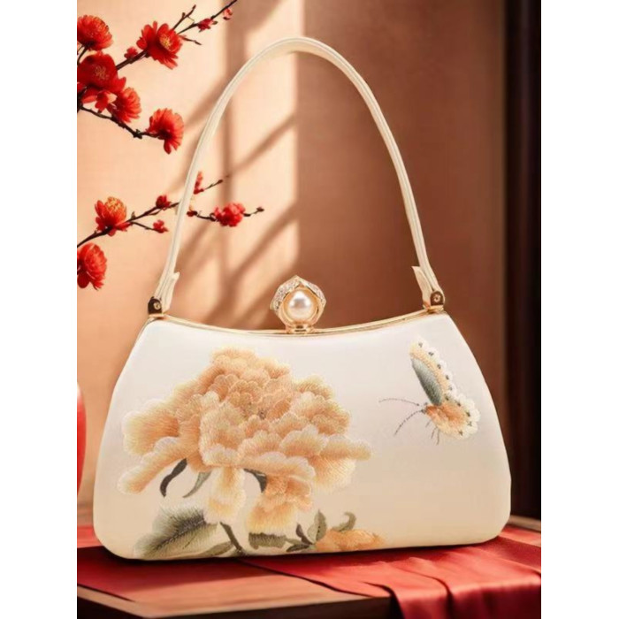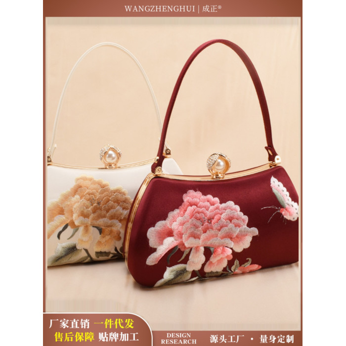 新中式旗袍包晚宴包高級感蘇綉復古隔層手提女包禮服包綉花花朵包