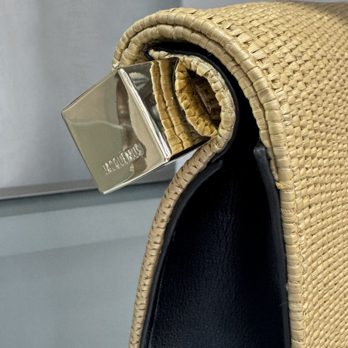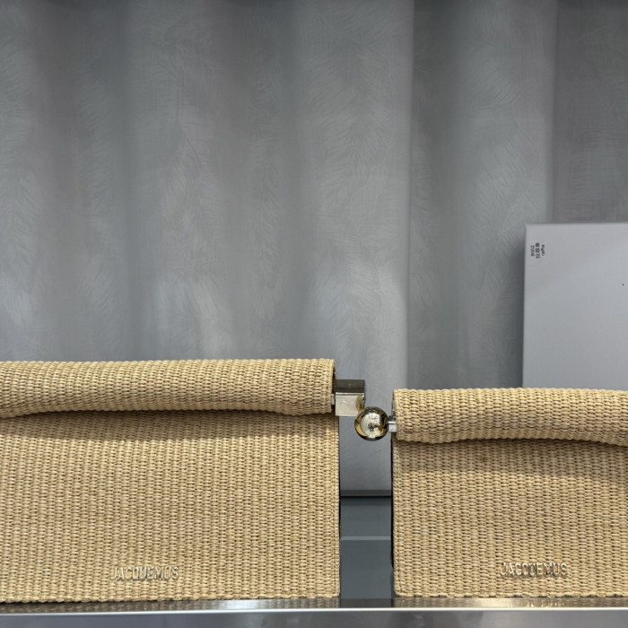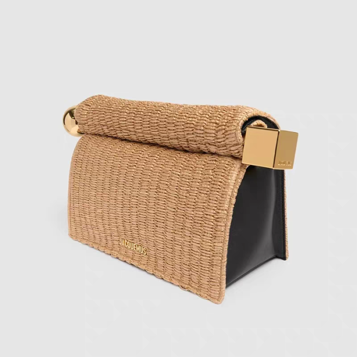 Jacquemus25新款折曡手拿包拉菲草編織手拿塑包輕奢卷邊晚宴女包