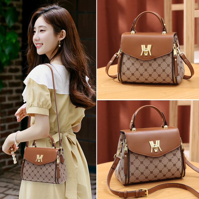 真皮女包小包包時尚手提包2025新款潮時尚百搭印花單肩斜背小方包