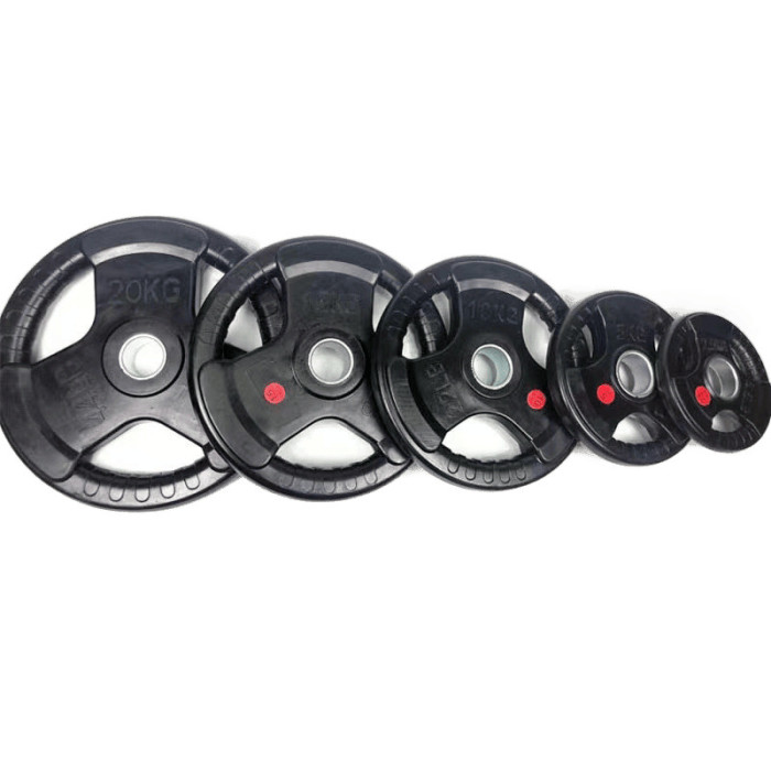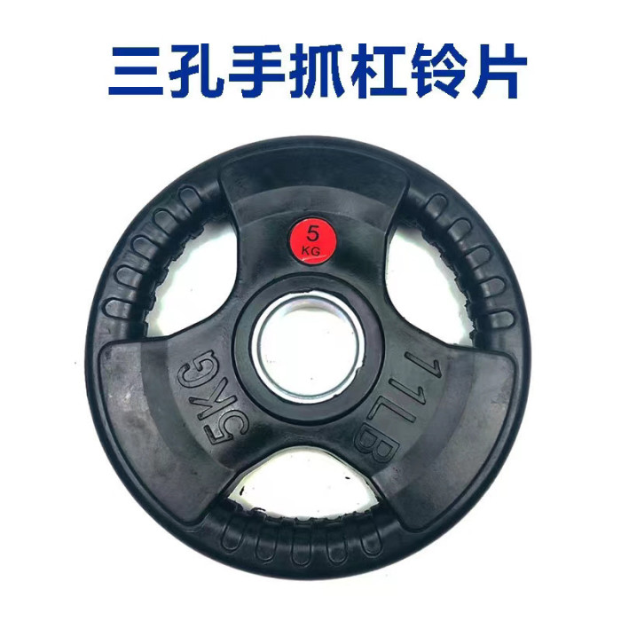 包膠鑄鐵杠鈴片奧桿三孔大孔啞鈴片家用加重健身