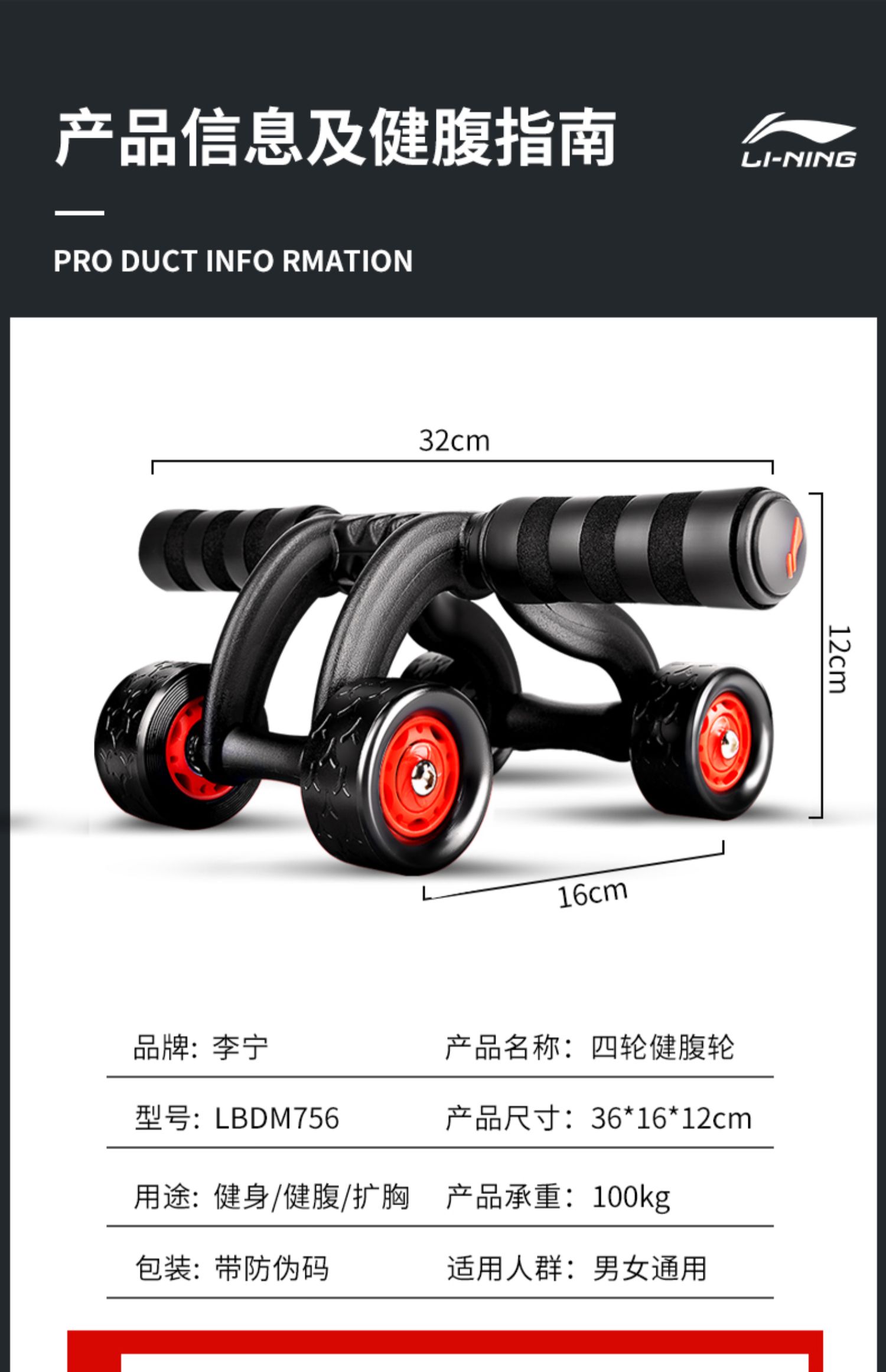 李甯健腹輪四輪健腹器男鍛鍊腹肌卷腹滾輪女收腹家用器材健身輪
