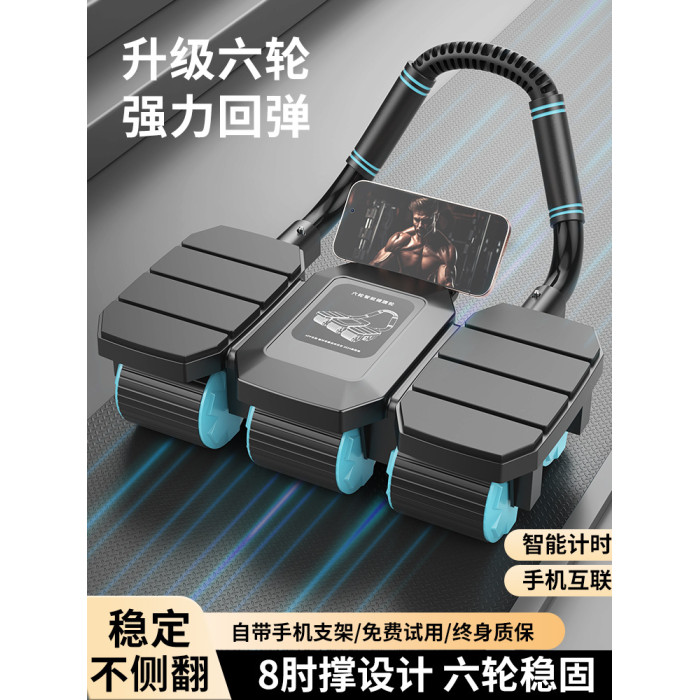 自動迴彈六輪八肘撐腹肌輪鍛練腹肌多功能健身器材男女家用健腹輪