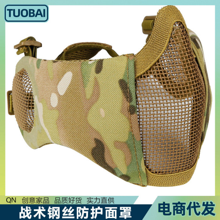 戰術鋼絲防護面罩真人CS護臉護耳一體半臉面具戰術面罩軍迷戶外面
