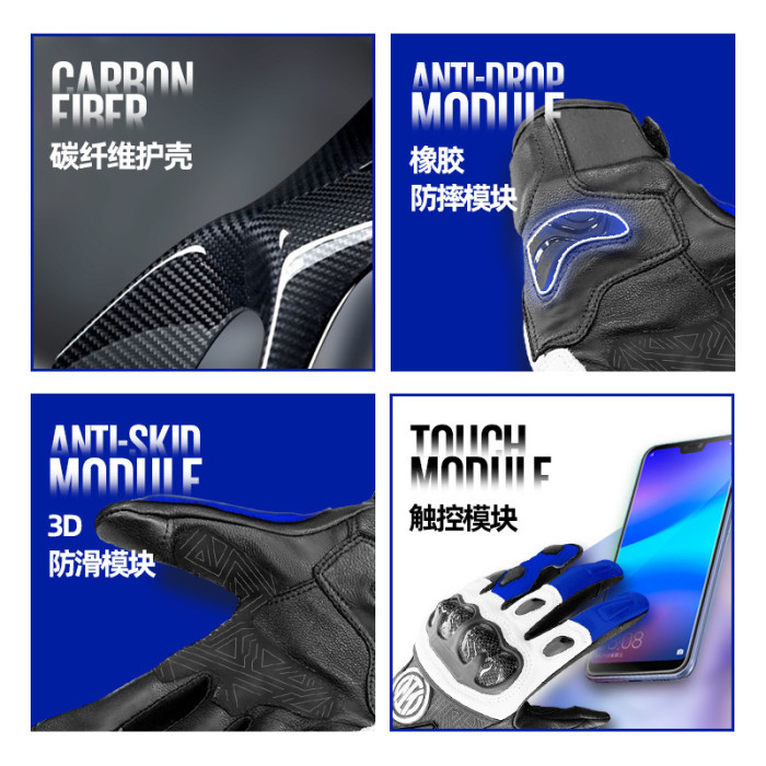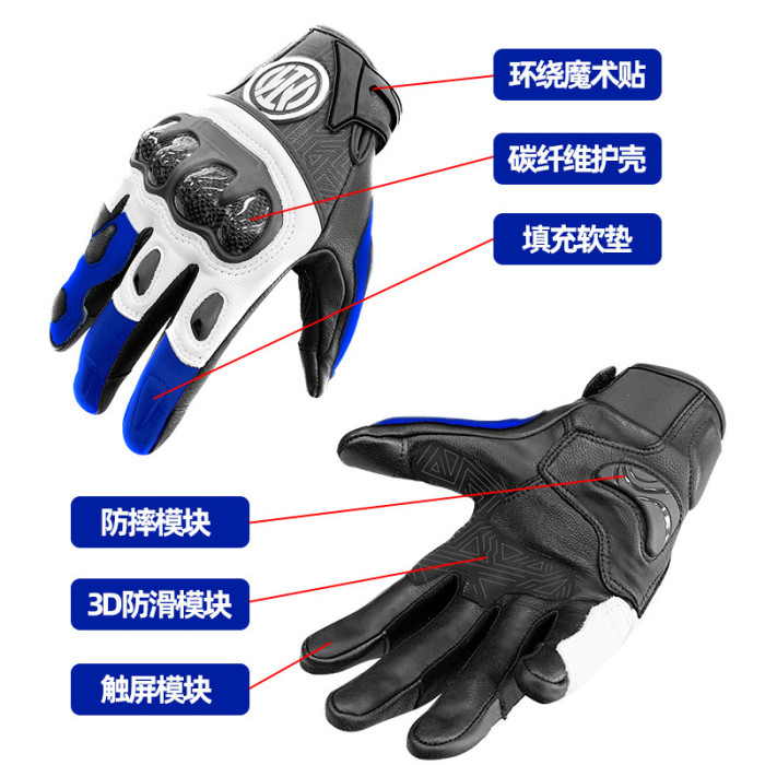 觸控螢幕碳纖騎行手套機車賽車滑雪防摔透氣觸控螢幕手套保暖防風減震加絨