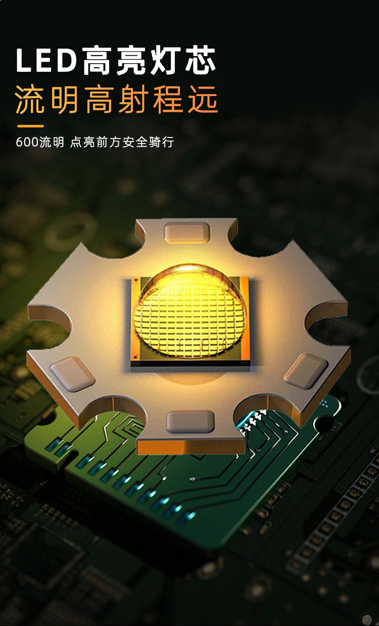 新款7led太陽能充電喇叭前燈type-c快充600流明電顯長續航夜騎燈