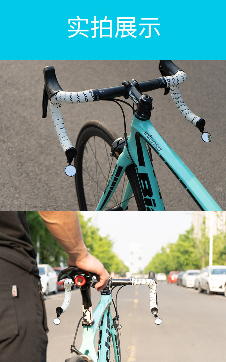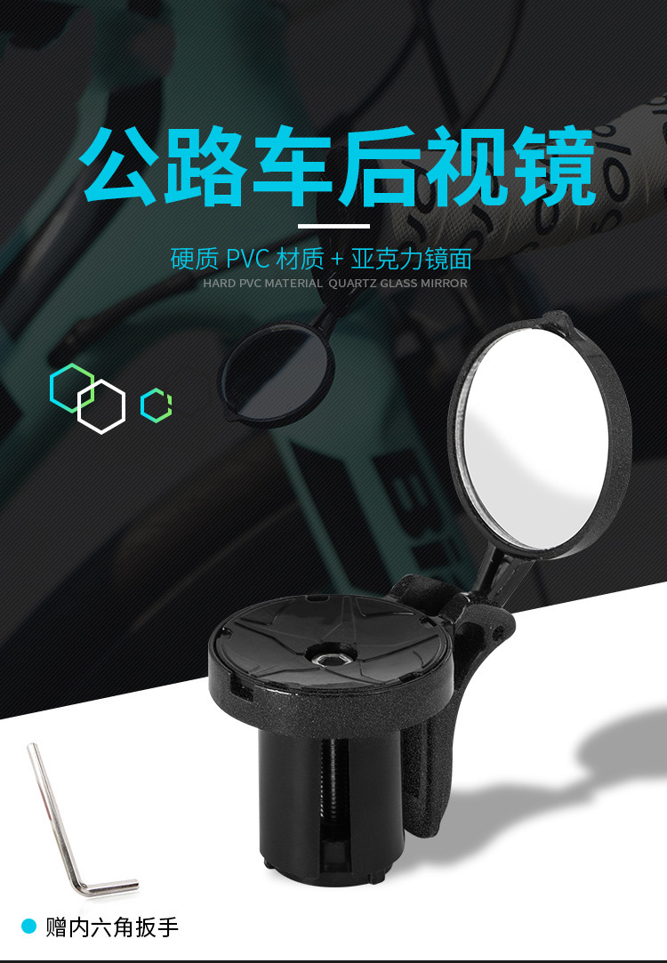 可旋轉自行車後視鏡公路車把塞反光鏡戶外騎行安全把堵凸面倒視鏡