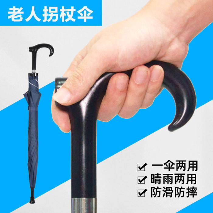 長柄手杖柺棍雨繖純色多功能老人柺杖繖加長防風太陽繖登山繖